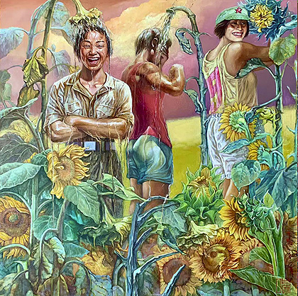 葵花雨#3 Title:Sunflower rain #3 Size:150X150cm Oil on Canvas