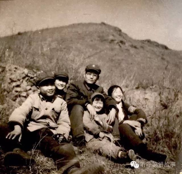 这就是我们楼后的小山,左起:呼吁、呼波、爸爸、呼呐和我。