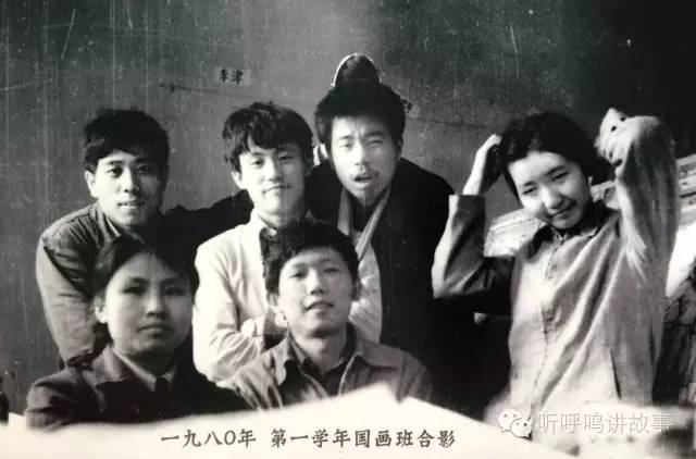 天津美院79级国画班合影。前排左起:李玉兰、陈宏年、呼鸣。后排左起:马俊卿、门如山、李津