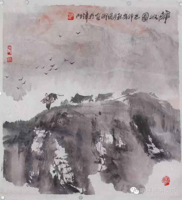 马俊卿作品:归牧图 50x50cm 纸本设色 1986年。