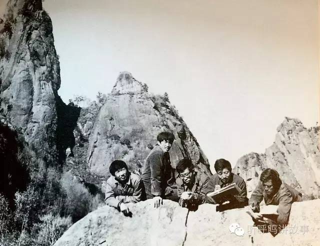 在燕山山脉上山水写生课。左起:陈宏年、门如山、马俊卿、老郭(进修生)、白庾延(老师)。