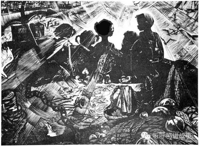 常工 1978级 《小楼春秋》40x30cm 木刻 1981年 毕业创作