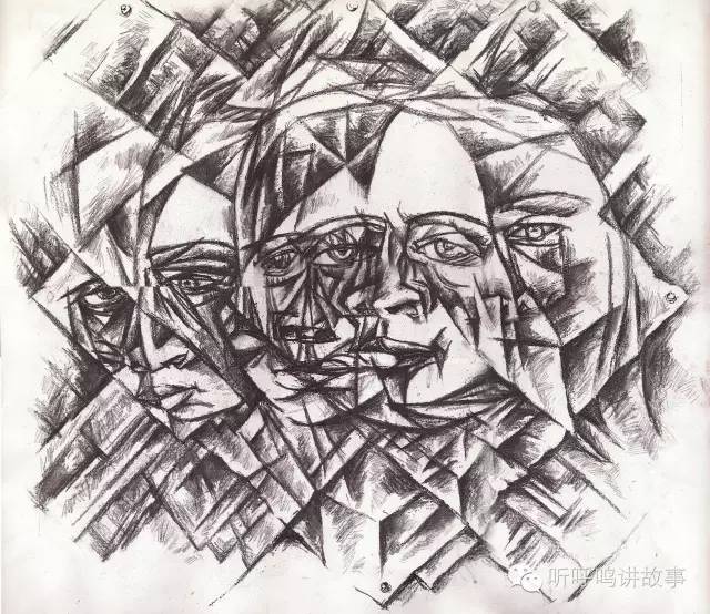 张燕云 1977级《自画像》——解读毕加索 60x60cm 纸本素描 2006年(参加亚洲基础造型学会在日本和韩国主办的展览并发表于优秀作品集)