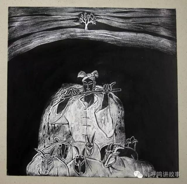 李友友 1979级 《信天游》 40cmx40cm 版画 1984年