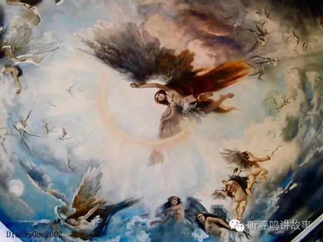 王玉琦1979级(主创)、吴恩海(待查)、马元1977级、王小杰1980级、高冬1979级 共同创作 天津站穹顶画《精卫填海》 1988年