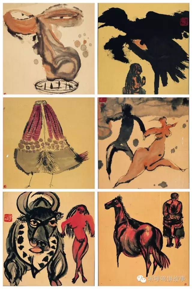 李津 1979级 《西藏组画》 选登 43×43cm×6 纸本设色 1983-1984年(入选1985 中国画新作邀请展)
