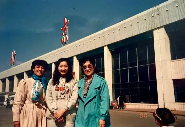 1990年4月8日(照片右下角记录)好朋友石红燕(左三)和朱夕红(左一)送到我首都机场前,并合影留念。